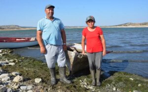 Kütahya’da 20 yıldır balık ve kerevit avlayan çift, geçimini Porsuk Barajı’ndan sağlıyor.
