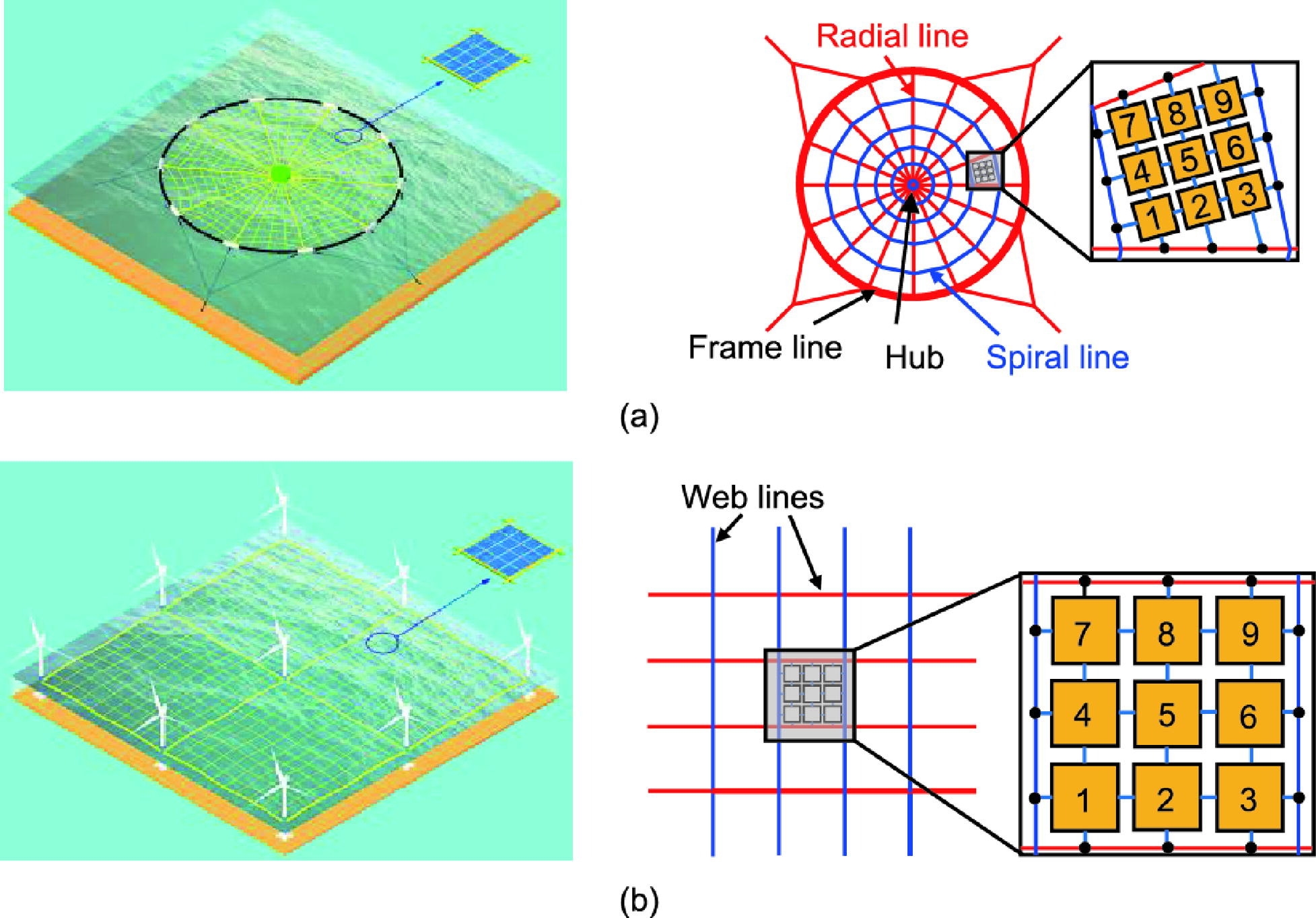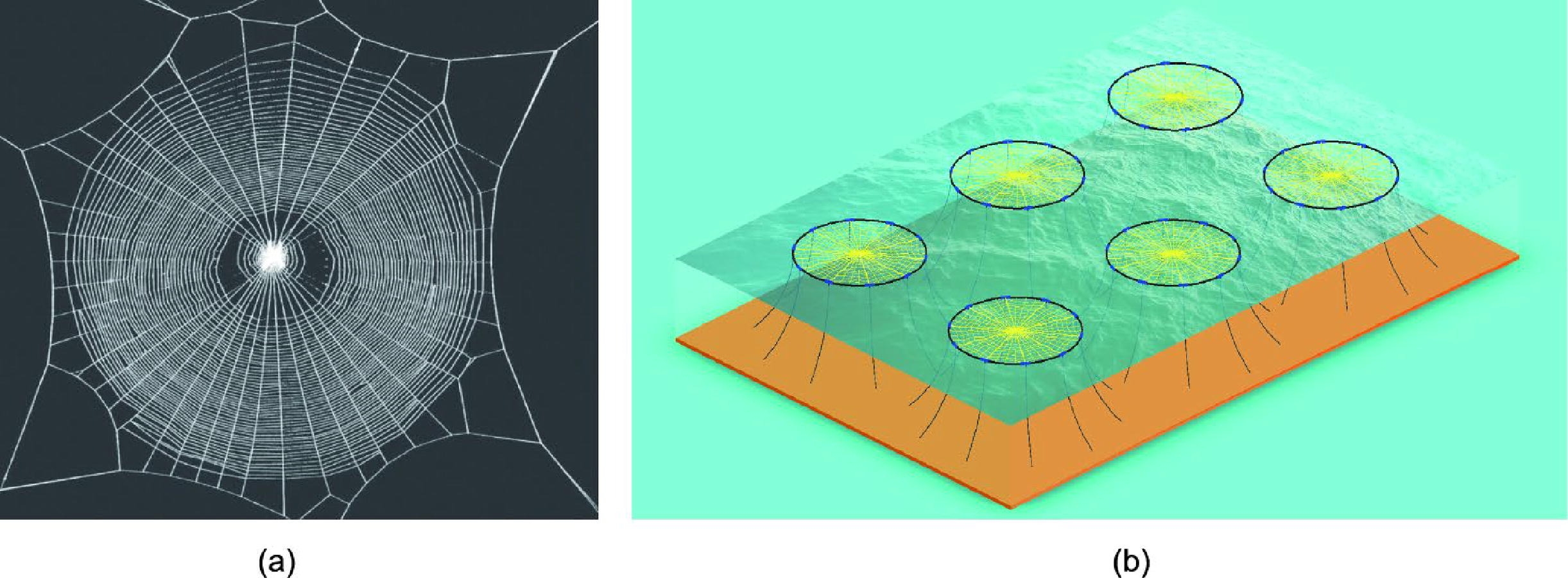 Bu yapı, tıpkı bir örümcek ağı gibi hem spiral hem de radyal esnek iplerden oluşuyor ve panellerin açık denizde güvenle durmasını sağlıyor. Sistem, özellikle spiral ve radyal düzenlerde veya açık deniz rüzgar türbinleri arasına kurulmak için uygun bulunuyor.